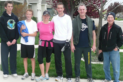 Saturday morning we went for a 5 mile run. We are all in training for the "bone and back" race in June. It was a lot of fun, even Jace, who doesn't run came and ran the entire thing in 8 minute miles! Joel's Dad went for a walk. It was a perfect morning.